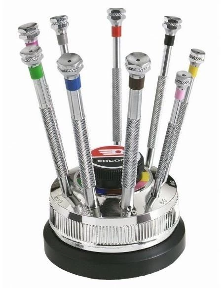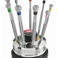 • 9 Tournevis à fente : 0,6×11 – 0,8×11 – 1×12 – 1,2×12 – 1,4×12 – 1,6×15 – 2×15 – 2,5 x 15,5 – 3×15,5 mm.